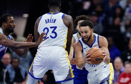 勇士隊首發(fā):安德魯-維金斯、斯蒂芬-庫里、克萊-湯普森、德雷蒙德-格林、凱文-盧尼