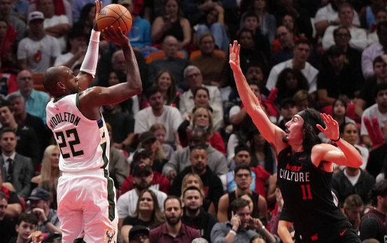 籃球直播吧11月29日訊 NBA季中錦標(biāo)賽,熱火主場對陣雄鹿。最終,雄鹿131-124戰(zhàn)勝熱火,雄鹿以小組第一的成績成功晉級錦標(biāo)賽8強(qiáng)。