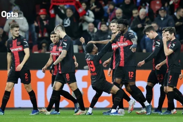 12月15日,歐陸小組賽最后一輪,勒沃庫森主場以5-1大勝莫爾德,成功將本賽季的連勝紀錄擴大到了23場。這場勝利讓勒沃庫森成為德國職業(yè)足壇歷史上僅有的兩支在賽季開局打出連續(xù)24場不敗的球隊之一,僅剩最后一場比賽便有機會創(chuàng)造歷史。